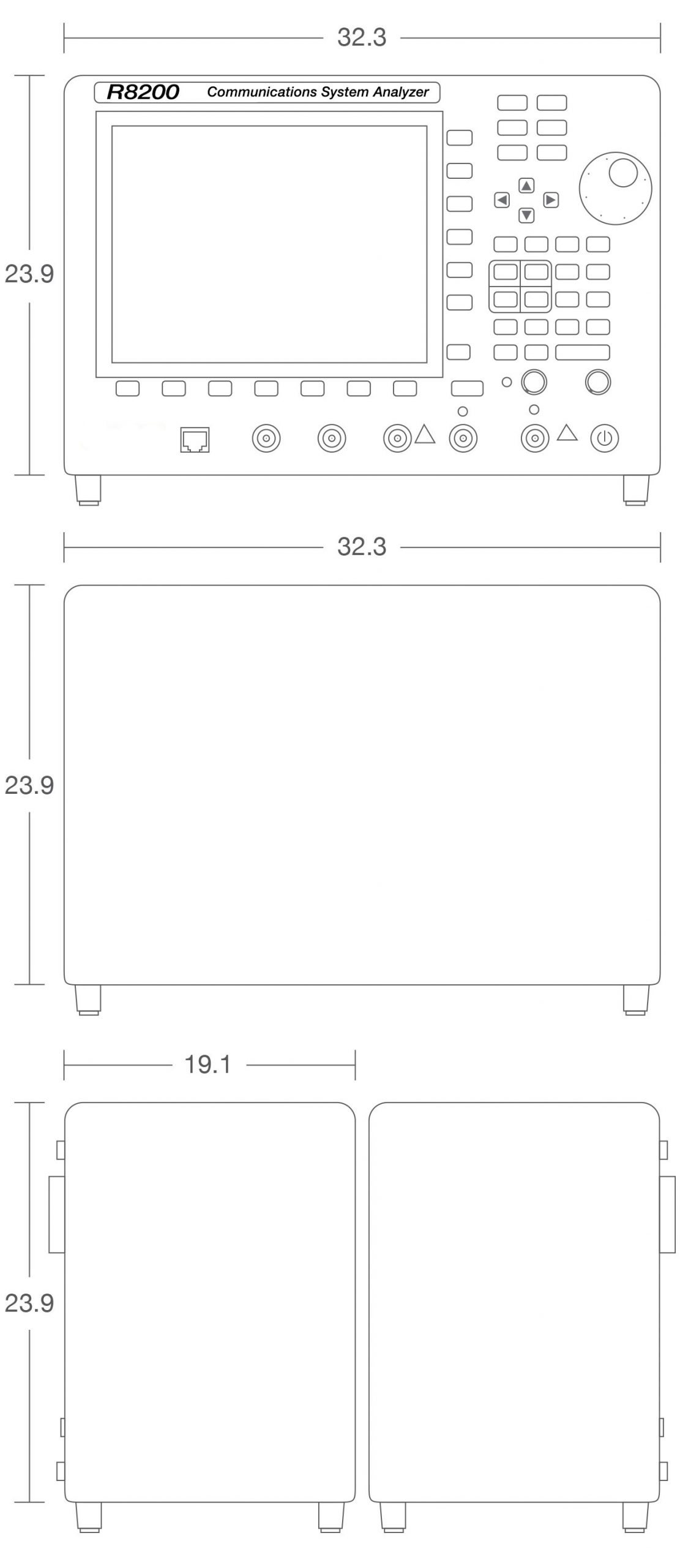 The R8200 features a color-enhanced, high-contrast display with key measurements shown in larger, bright blue font. It’s tuning knob also serves as a data-entry key, allowing the user to minimize the amount of hand movement required to navigate test procedures. It also sports a rugged, foldable metal handle and ear phone jack for use in high-noise environments.